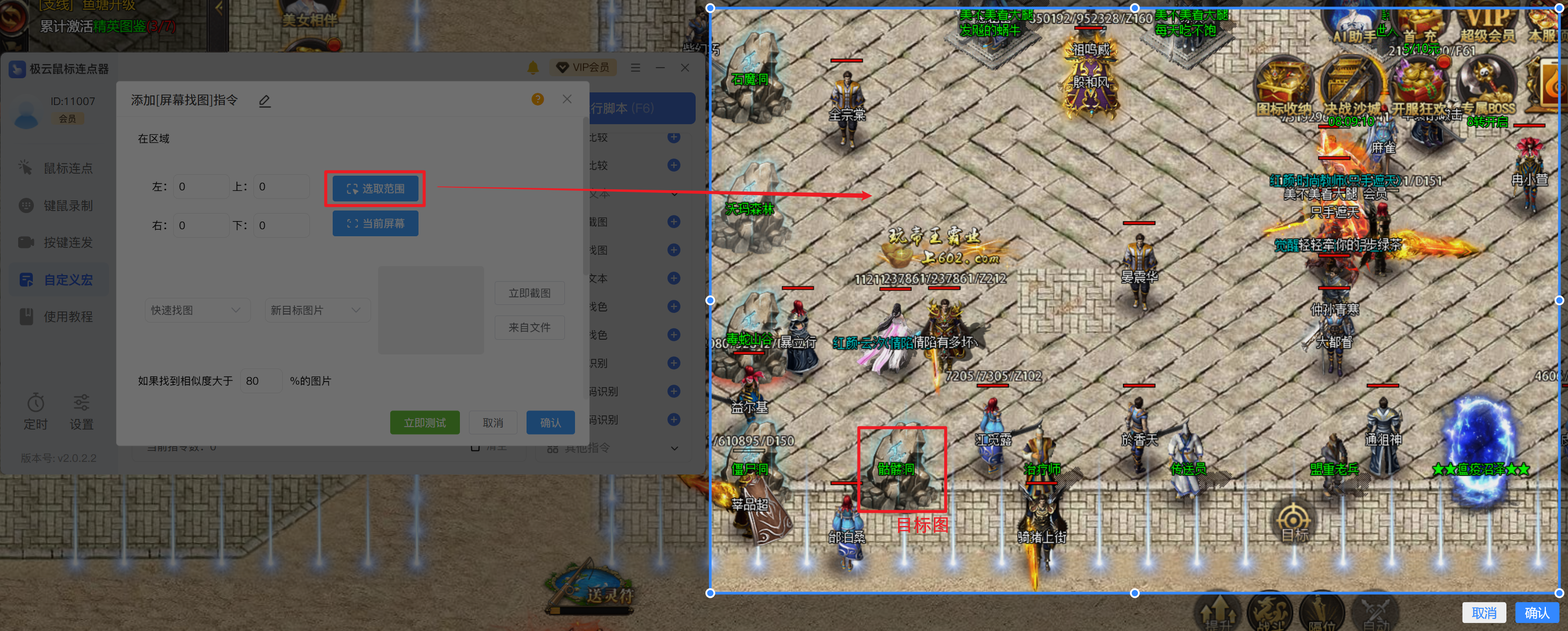 步骤十一:添加【屏幕找图】指令,这里就是重复上述的操作,选取范围,截取需要查找的图即可,每次都测试下是否可以精准找到