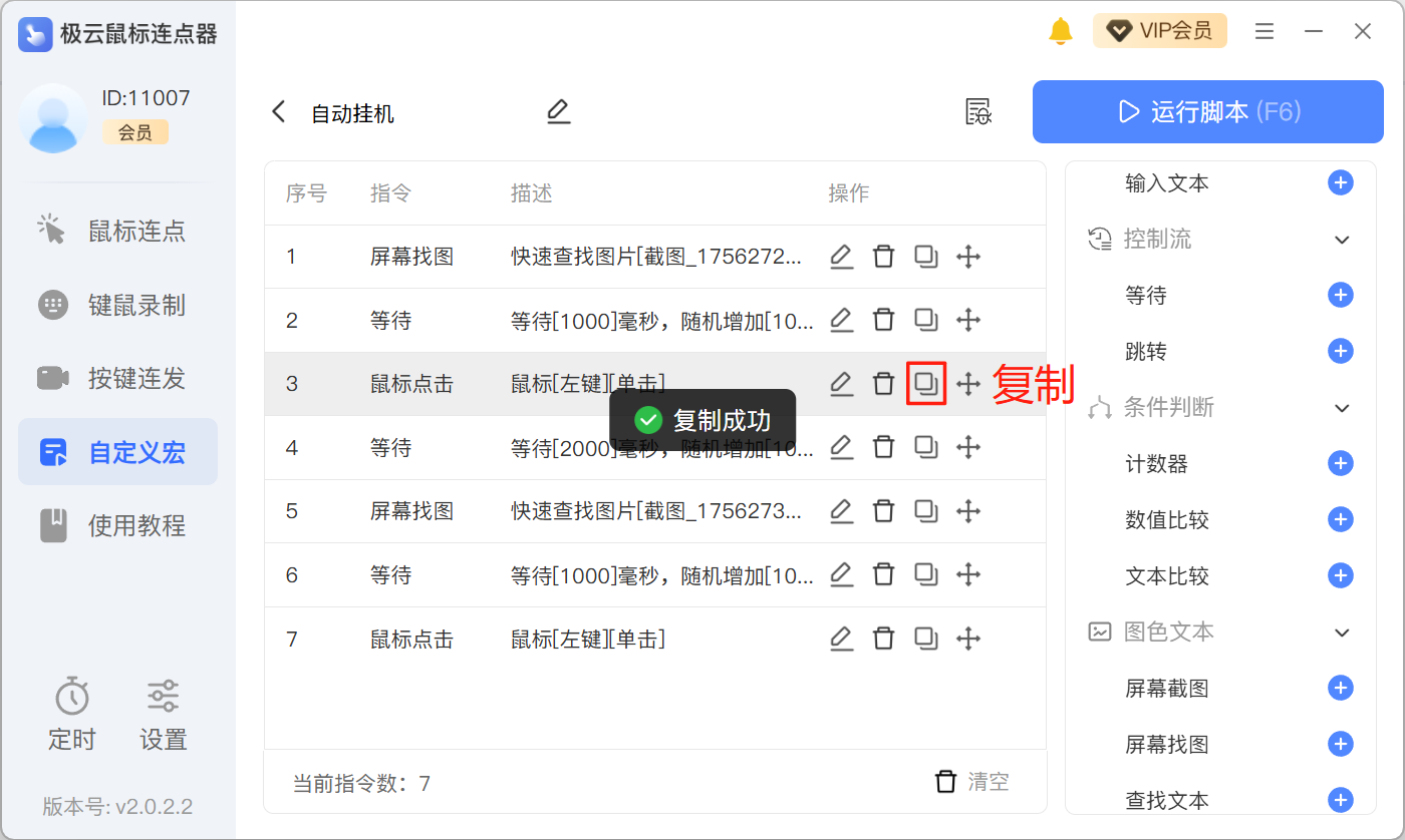 步骤十三:添加【鼠标点击】指令,可直接复制序号3